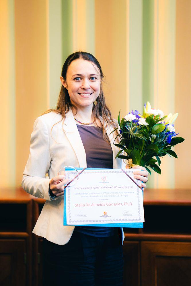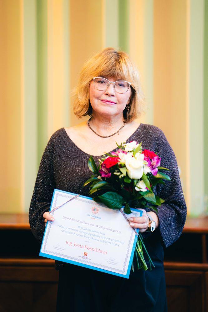 v kategorii a) Veřejné ocenění mimořádného přínosu žen, zaměstnankyň VŠCHT Praha, k rozvoji vědy, výzkumu, pedagogiky a inovací, včetně působení v akademické sféře